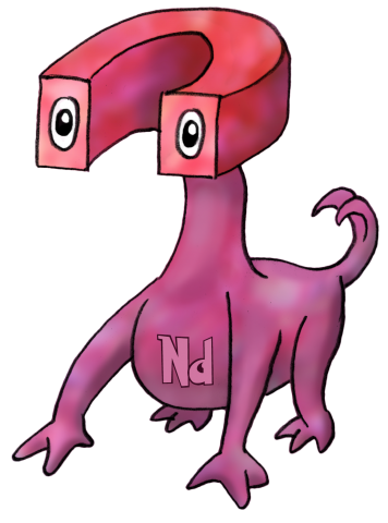 Der Neodym bedeutet soviel wie "neuer Zwilling" (aus dem Griechischen neo = neu und didymos = Zwilling), weil es dem Element Lanthan so änlich ist. Bekannt wurde es durch die besonders starken Magneten, welche aus einer Legierung von Neodym, Eisen und Bor bestehen.
